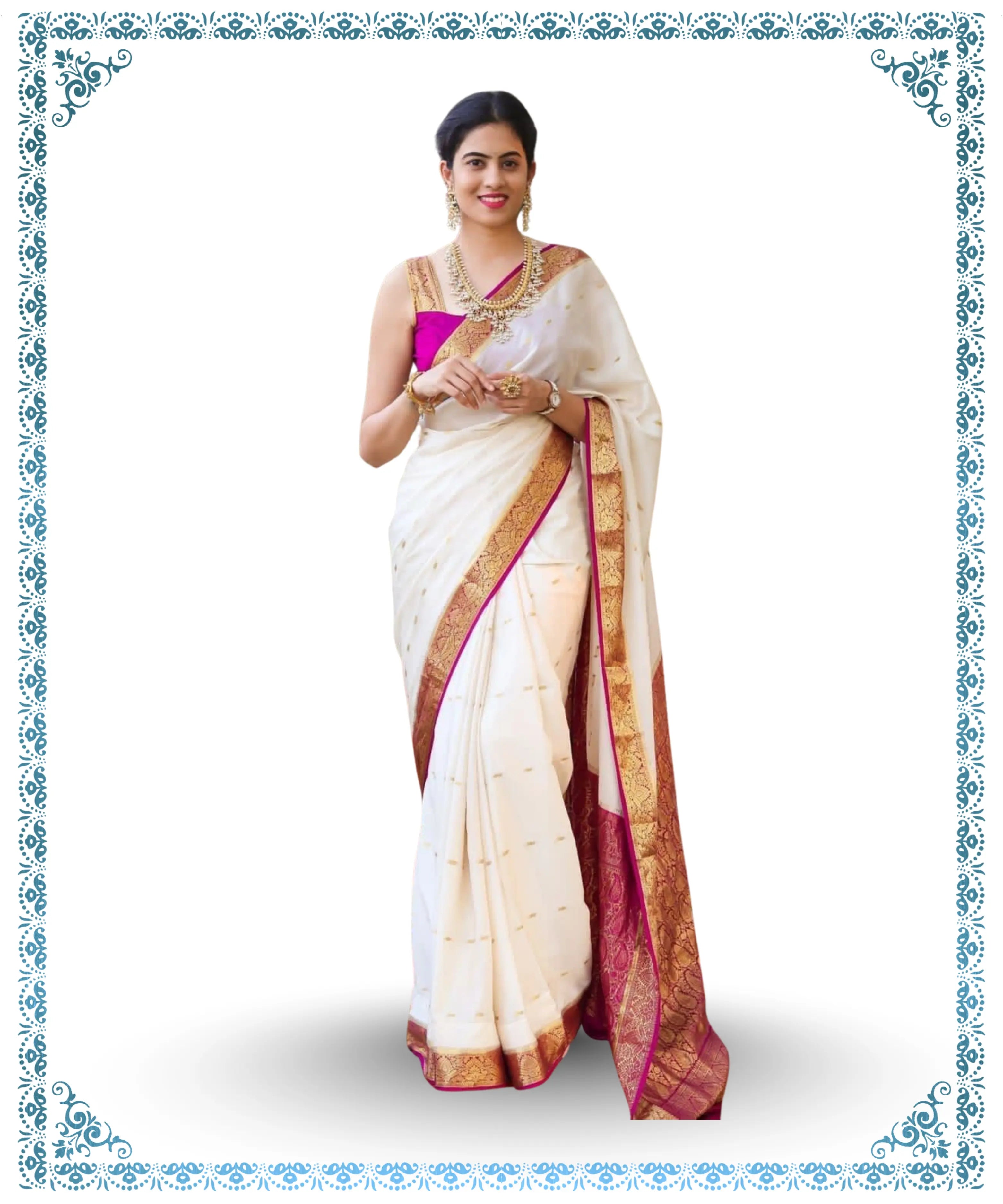 Elegant Cream Silk Saree with Rich Pink Zari Border