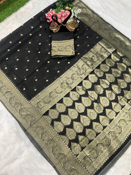 Classic Banarasi Style Lichi Silk Saree with Contrast Border