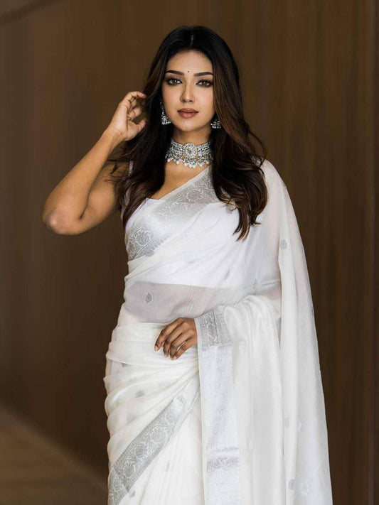 Comfort-Fit Banarasi Inspired Saree Crafted in Smooth Lichi Silk