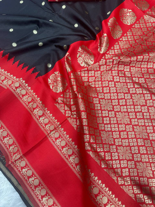 Easy-Drape Lichi Silk Saree with Banarasi Motifs