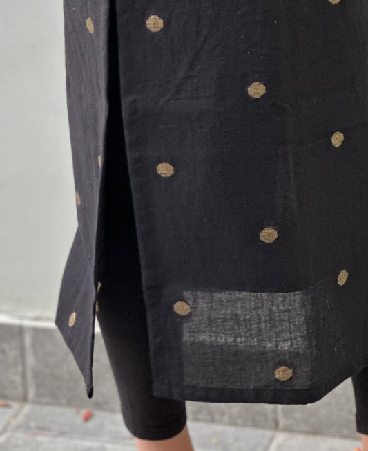 Black Kurti With Gold Dollar Butta