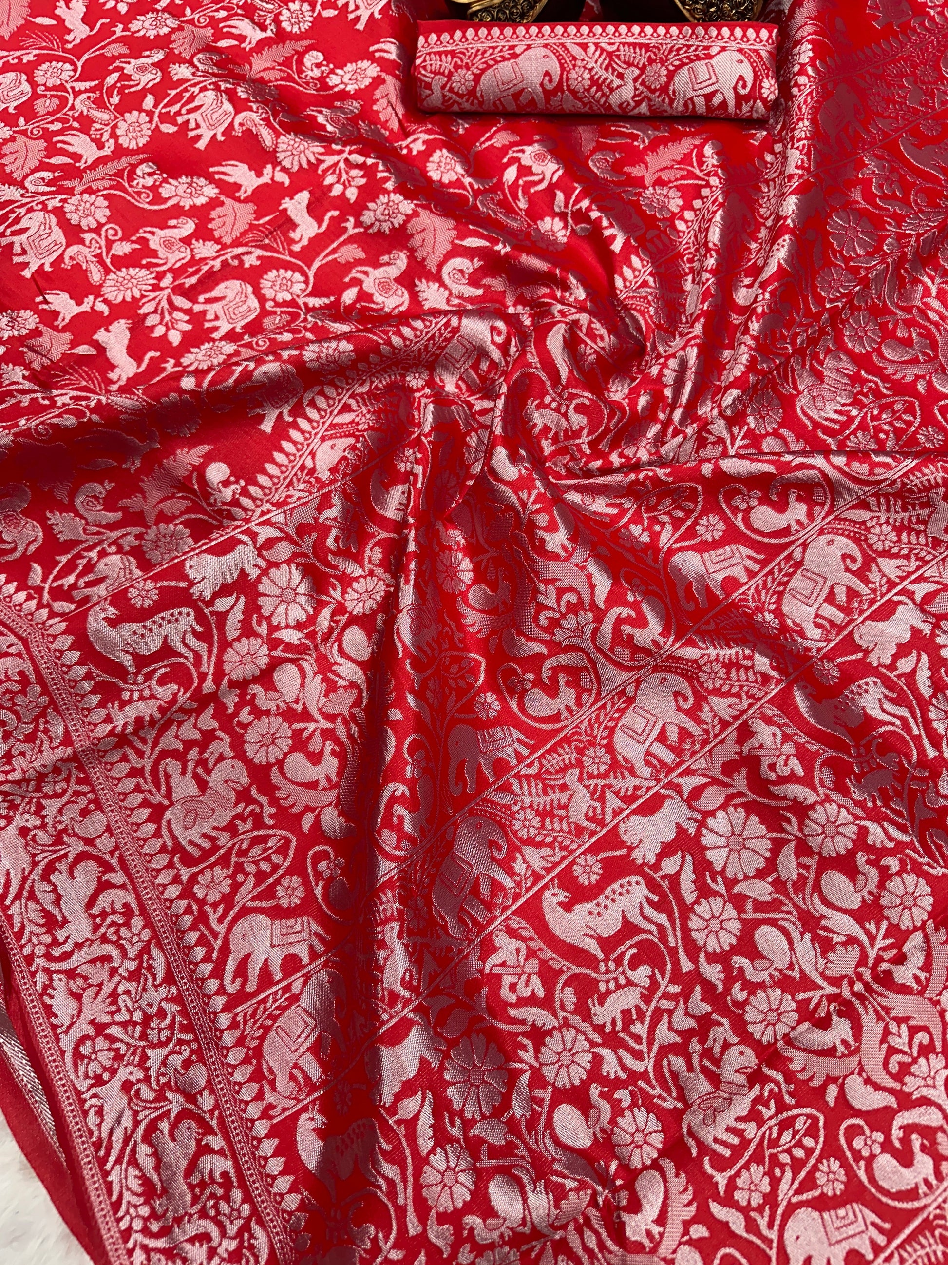 Enchanting Lightweight Banarasi Saree in Lichi Silk – Perfect for Weddings & Festive Occasions